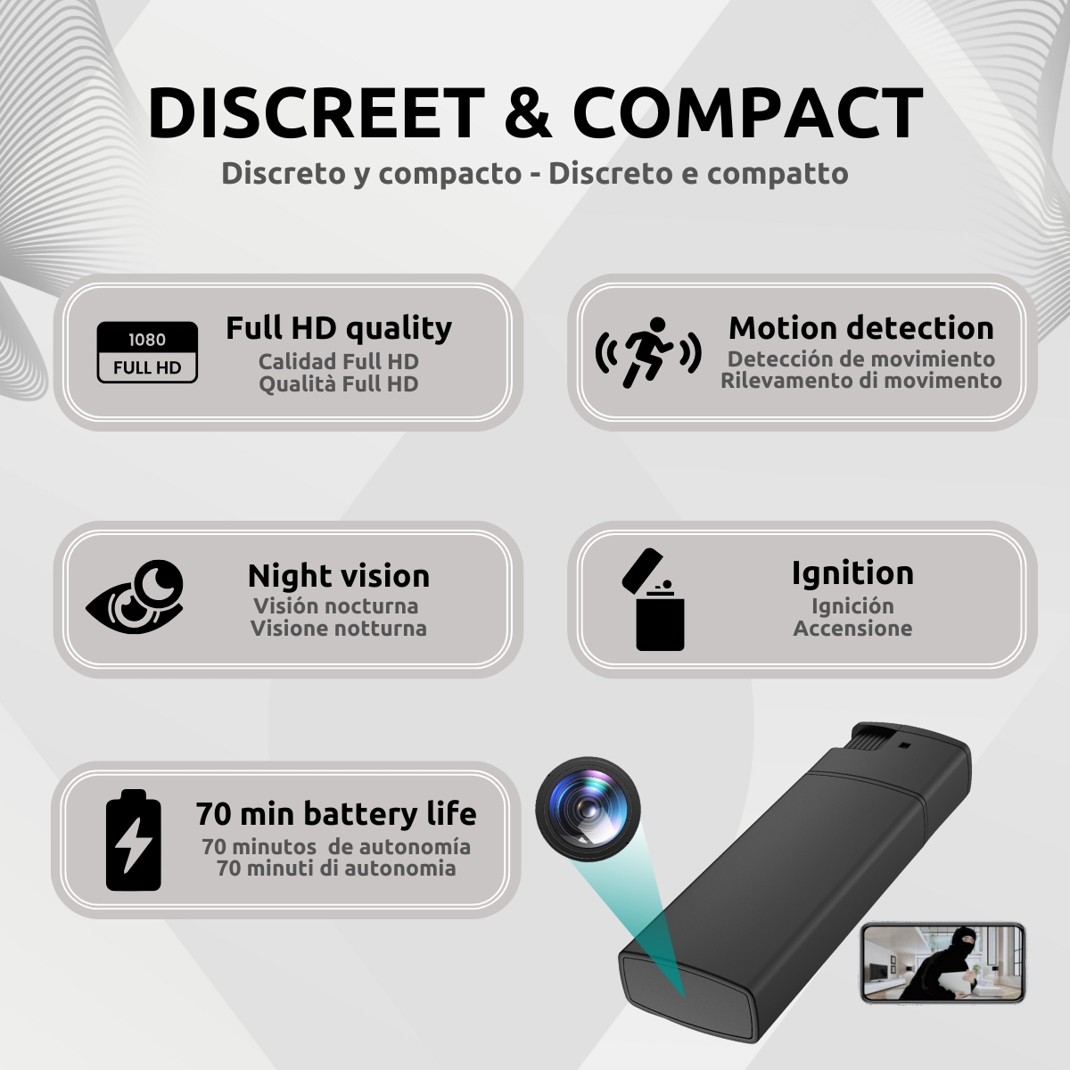 El Mechero Cámara Espía tiene una conexión USB oculta en su interior, haciendo muy sencilla la transferencia de archivos almacenados a tu ordenador. También ofrece transmisión punto a punto hasta 25 metros, lo que lo hace perfecto para espacios cerrados o situaciones en las que se requiere acceso inmediato al dispositivo. Su bajo consumo de energía y tamaño compacto lo convierten en una solución de vigilancia eficaz, portátil y fácil de usar.